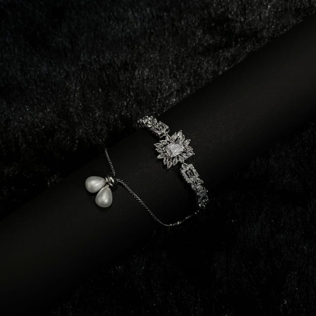 Add a touch of timeless luxury to your collection with our Emerald Elegance Bracelet. Crafted with precision, each rectangular green stone is encased in a halo of shimmering white stones, creating a refined and graceful design. Perfect for evening wear or festive occasions, this bracelet brings an elegant charm to any outfit.