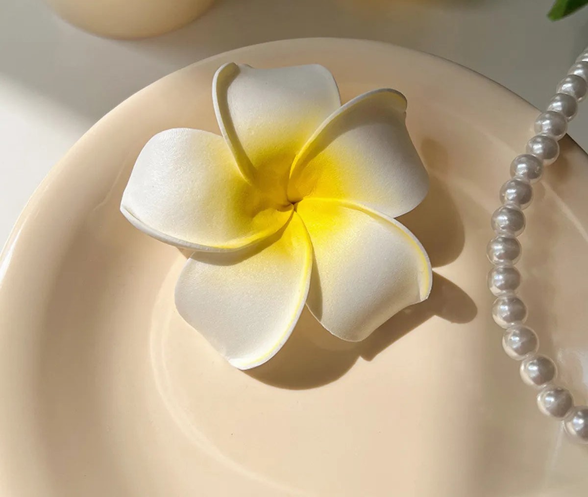 Tropical Frangipani Flower Hair Clip – Handmade Resin Accessory