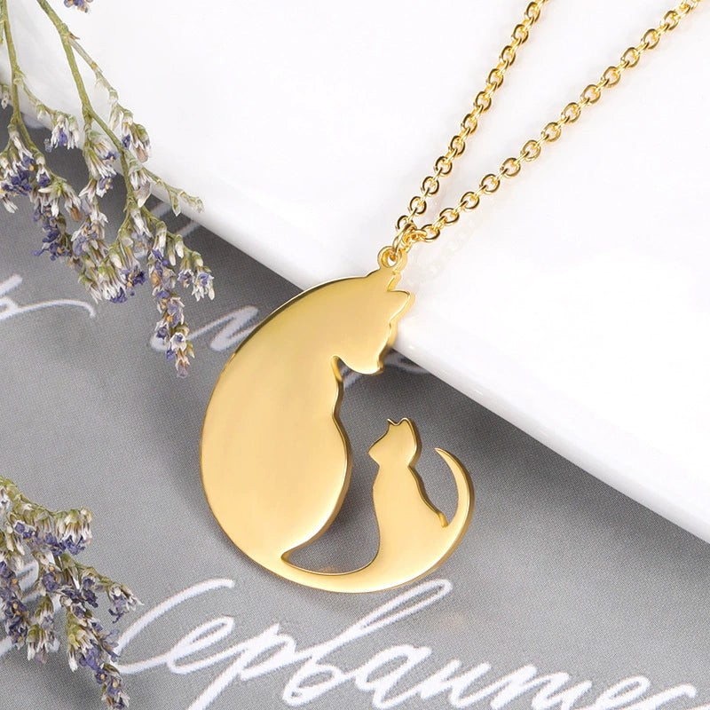 This cat pendant necklace beautifully captures the bond of affection with its minimalist geometric design. Crafted from durable stainless steel and copper, the pendant features a polished electroplated finish for long-lasting shine. Its unisex appeal makes it a thoughtful gift for cat lovers, couples, or anyone who cherishes symbolic jewelry. A versatile piece that blends simplicity with emotional depth, perfect for both casual and formal outfits.
